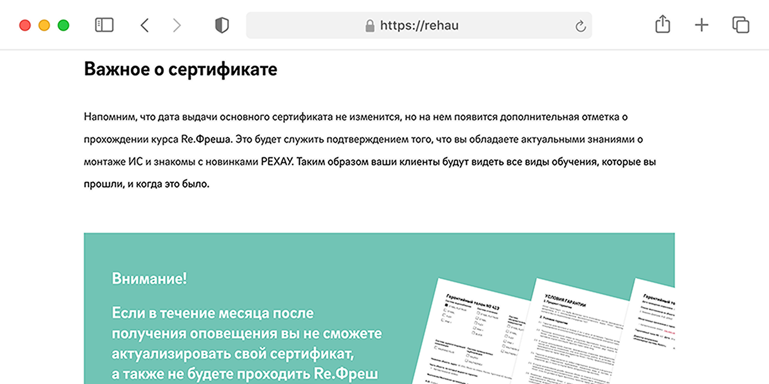 Это постоянно обновляющийся курс о компании Рехау и ее продуктах. Он поможет монтажникам поддерживать актуальные знания, чтобы качественно выполнять свою работу и быть в курсе новинок в сфере